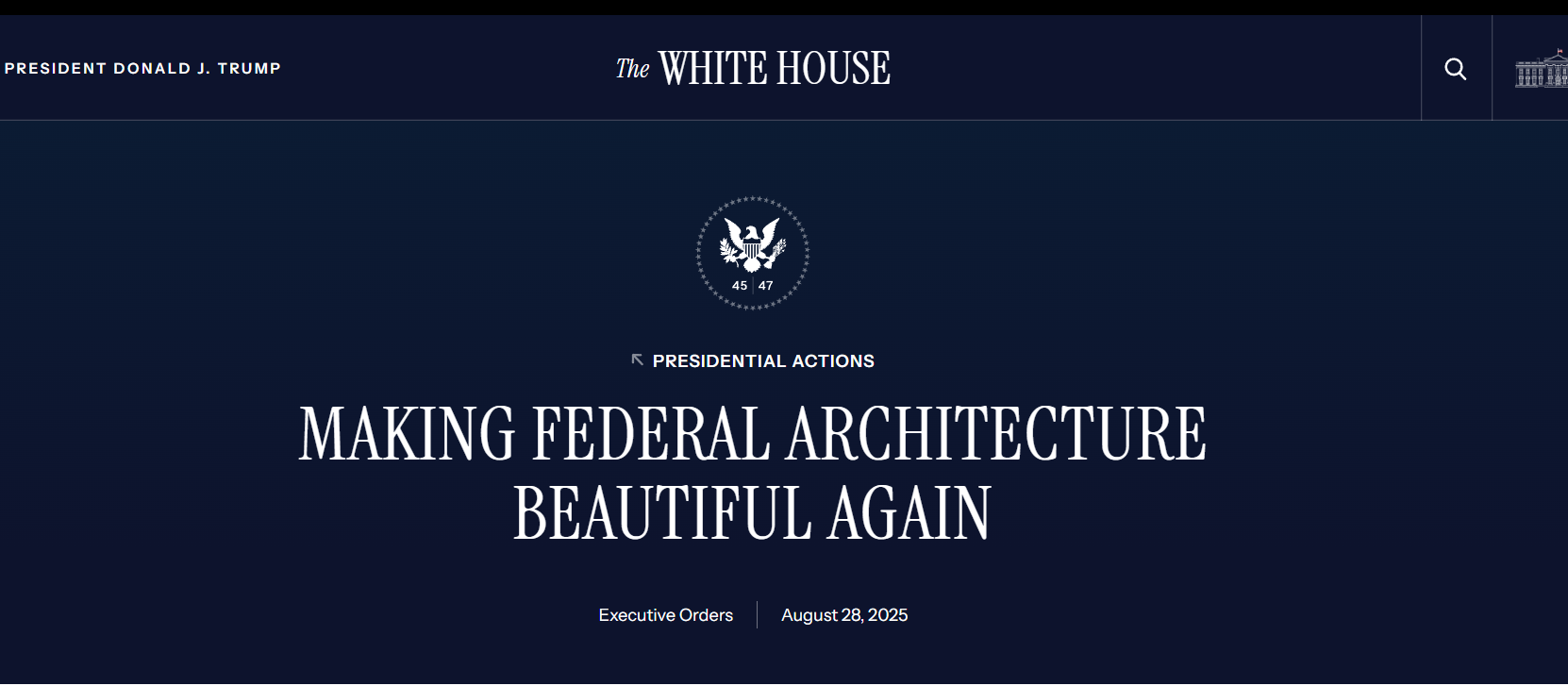 Trump har sedan tidigare drivit tesen “Making Federal Architecture Beautiful Again” – bland annat med devisen att “traditionell och klassisk arkitektur” ska vara förstahandsvalet för alla federala byggnader.