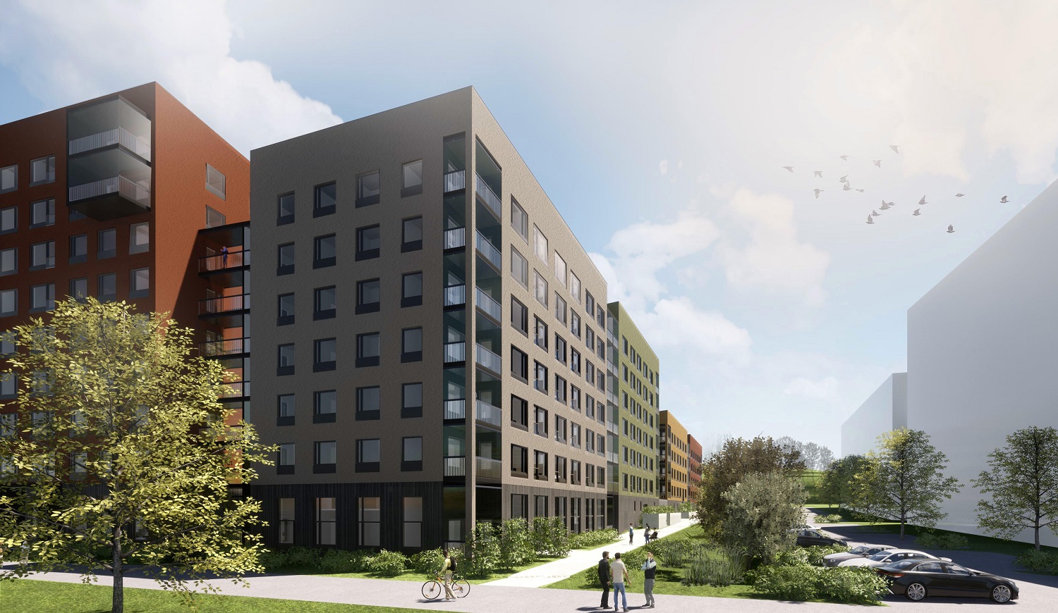 Bostäderna är fördelade i fem hus och de blir startskottet för ett nytt bostadsområde i staden. I NCC:s uppdrag ingår även att bygga ett parkeringshus och en innergård ovanpå.